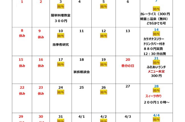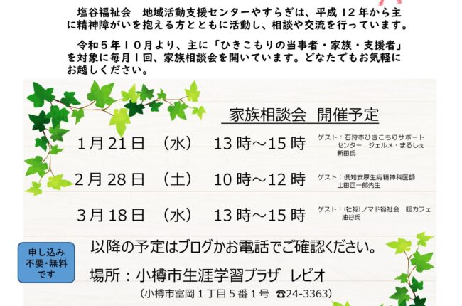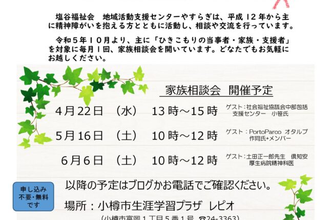 家族相談会、イベント情報などを
