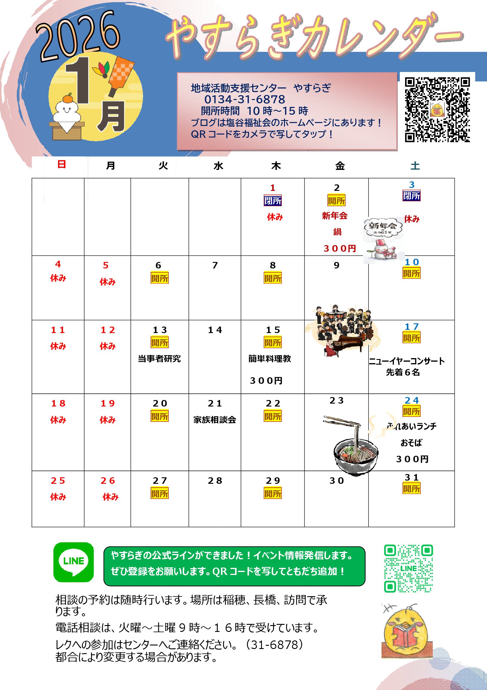 やすらぎカレンダー1月アップしました!