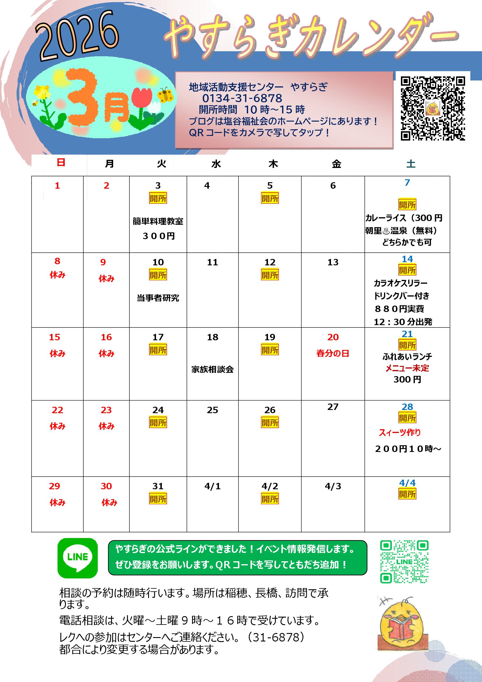 春が待ち遠しい時期になりましたね。火・木・土は開所しておりますのでみなさんと会えるのを楽しみにしてます。又、レクの参加お待ちしております。
