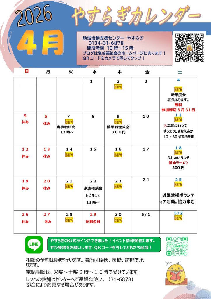 やすらぎの公式ラインができました!ぜひともだち登録お願いします。